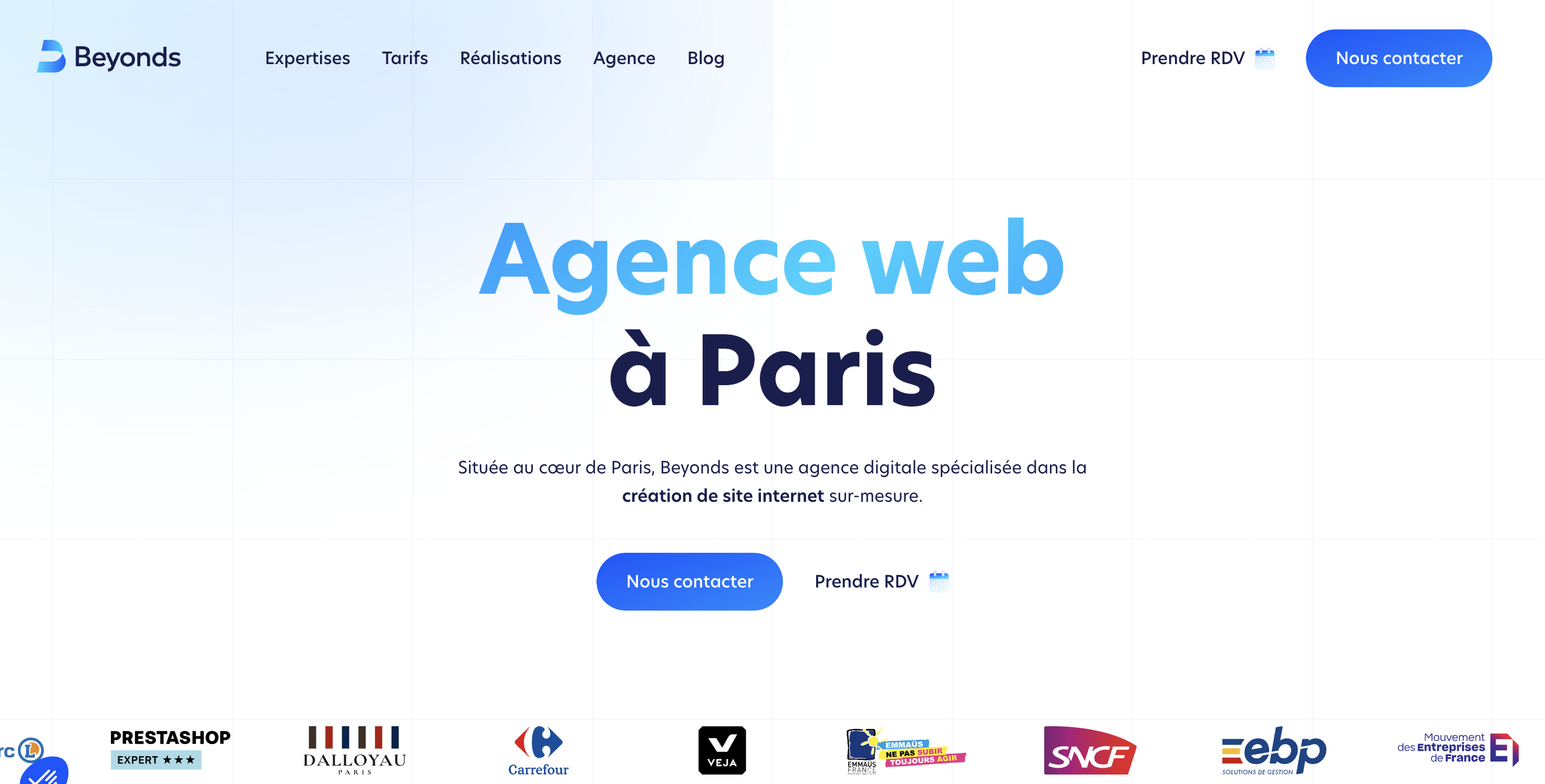 Beyonds est une agence digitale experte en Webflow et stratégies de croissance, qui accompagne les marques dans la création de sites performants, esthétiques et orientés résultats. Alliant design réfléchi, UX optimisée et approche orientée acquisition, Beyonds aide ses clients à transformer leur présence en ligne en un véritable moteur de conversion et de visibilité.