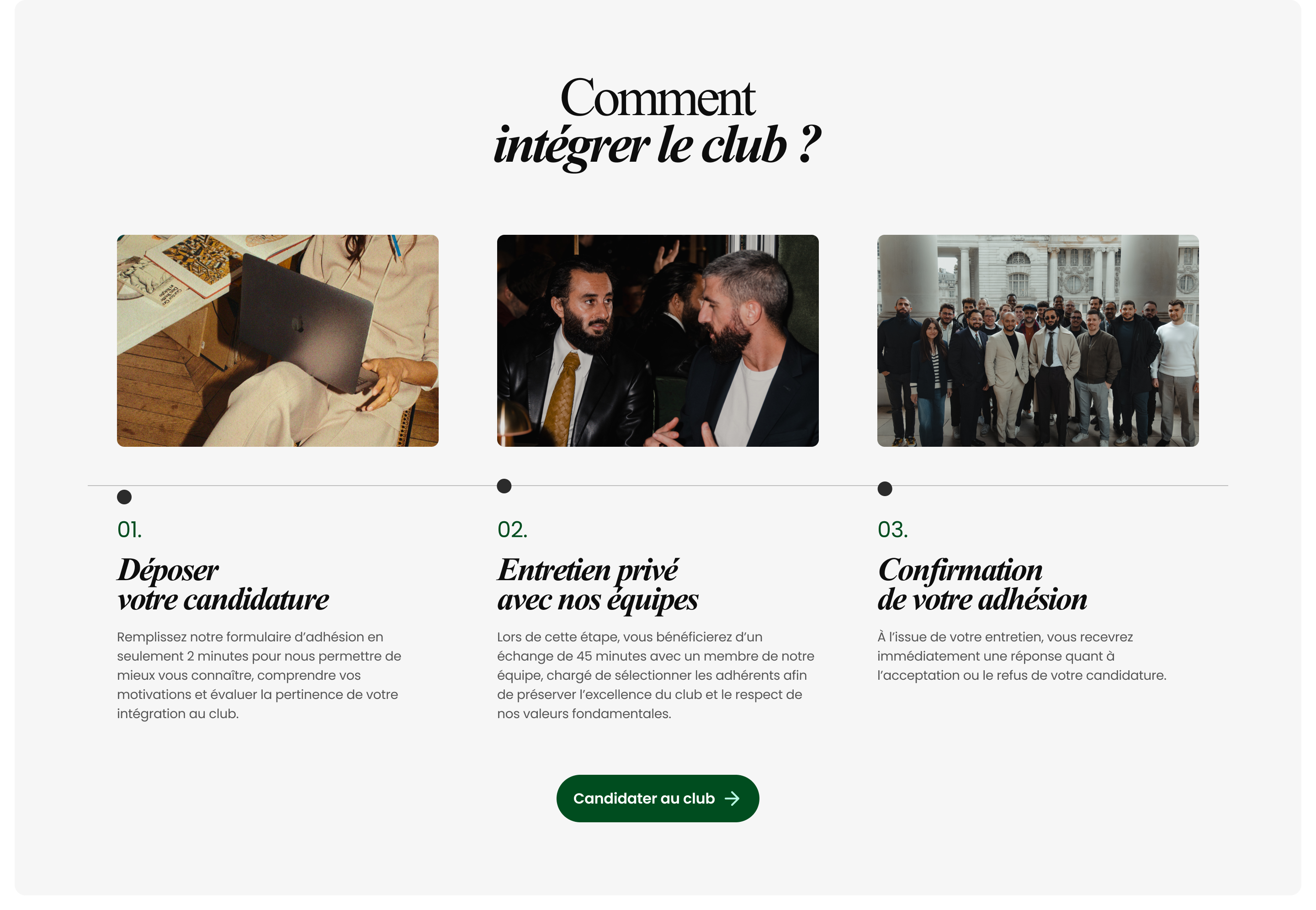 We designed a web design that was both simple and impactful, with a clear content hierarchy to quickly understand the value proposition. The site was structured around progressive storytelling: presentation of the founder, explanation of the concept, highlighting the benefits and encouraging them to join the club.