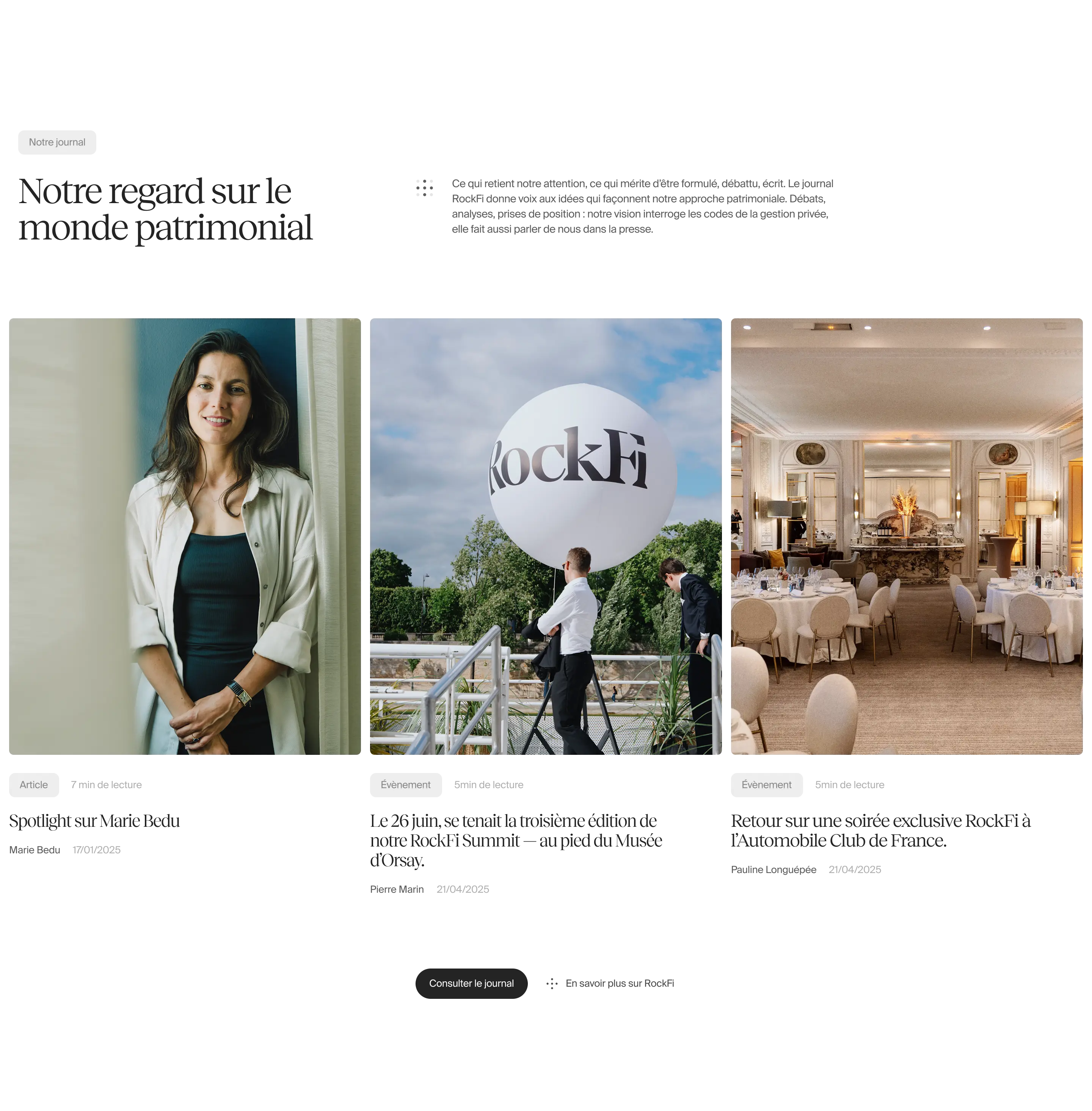 The RockFi site now offers a clear, professional and credible image, in line with the expectations of its target audience. Visitors quickly understand the value proposition and can easily access critical information. The user journey facilitates contact, transforming the site into a real lead generation tool. The SEO foundations put in place also make it possible to consider a gradual increase in visibility on requests related to private investment management and wealth management.